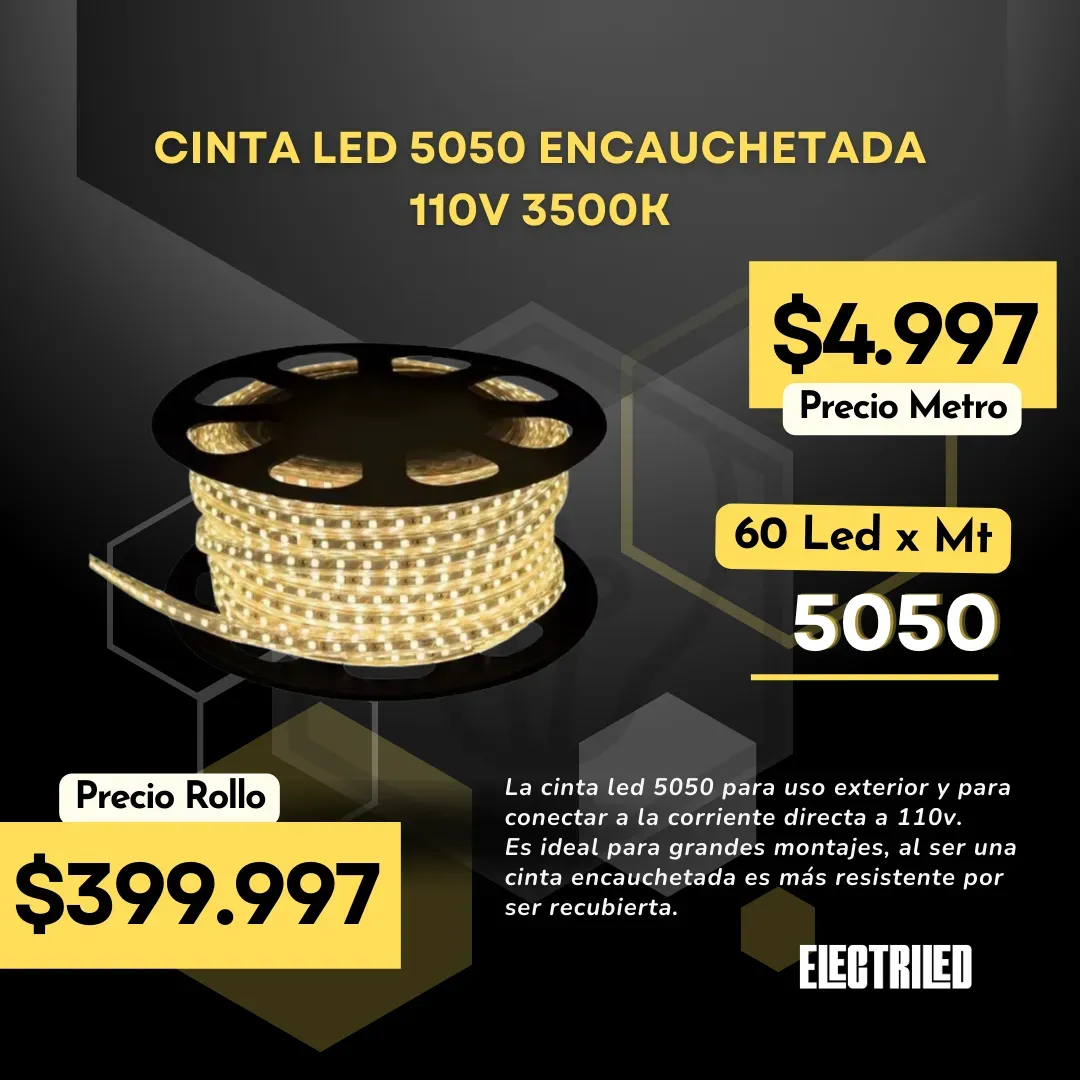 La cinta led 5050 para uso exterior y para conectar a la corriente directa a 110v.