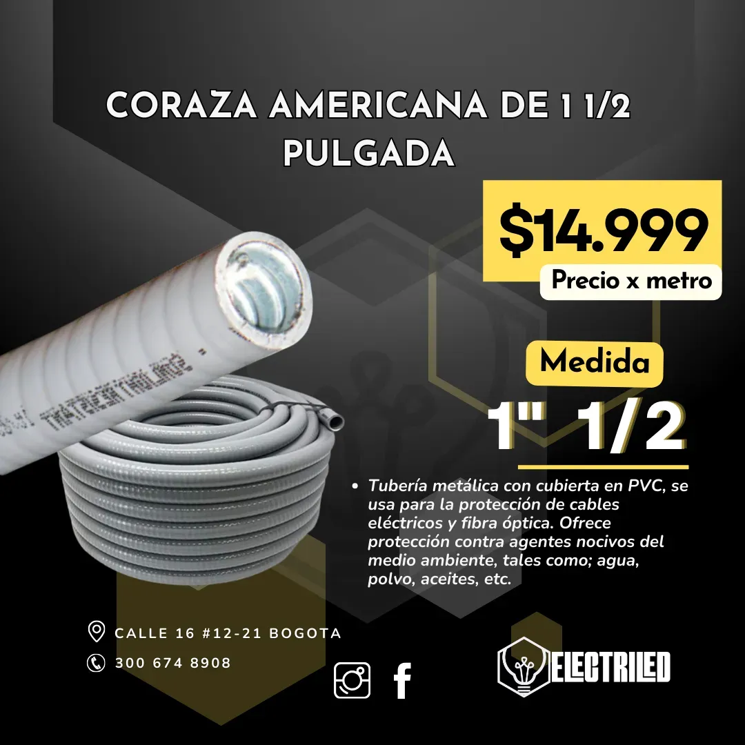 Tubería metálica con cubierta en PVC, se usa para la protección de cables eléctricos y fibra óptica. Ofrece protección contra agentes nocivos del medio ambiente, tales como; agua, polvo, aceites, etc.