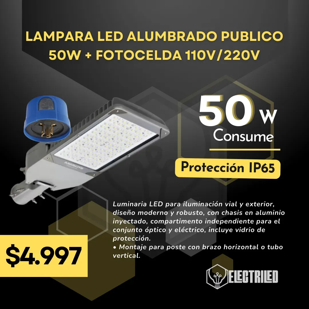 LAMPARA LED ALUMBRADO PUBLICO 50W + FOTOCELDA 110V/220V