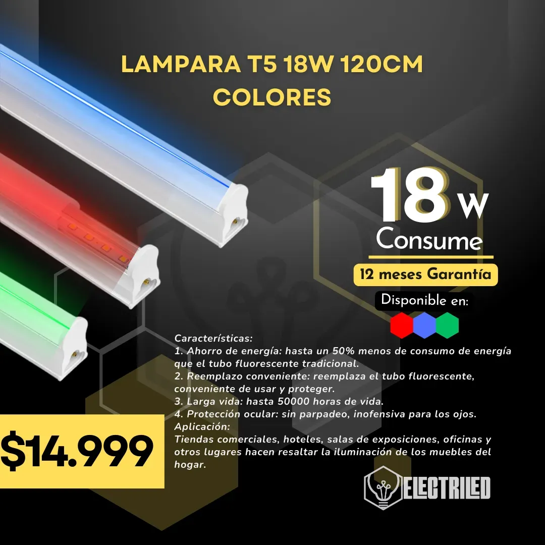 LAMPARA T5 18W 120CM COLORES