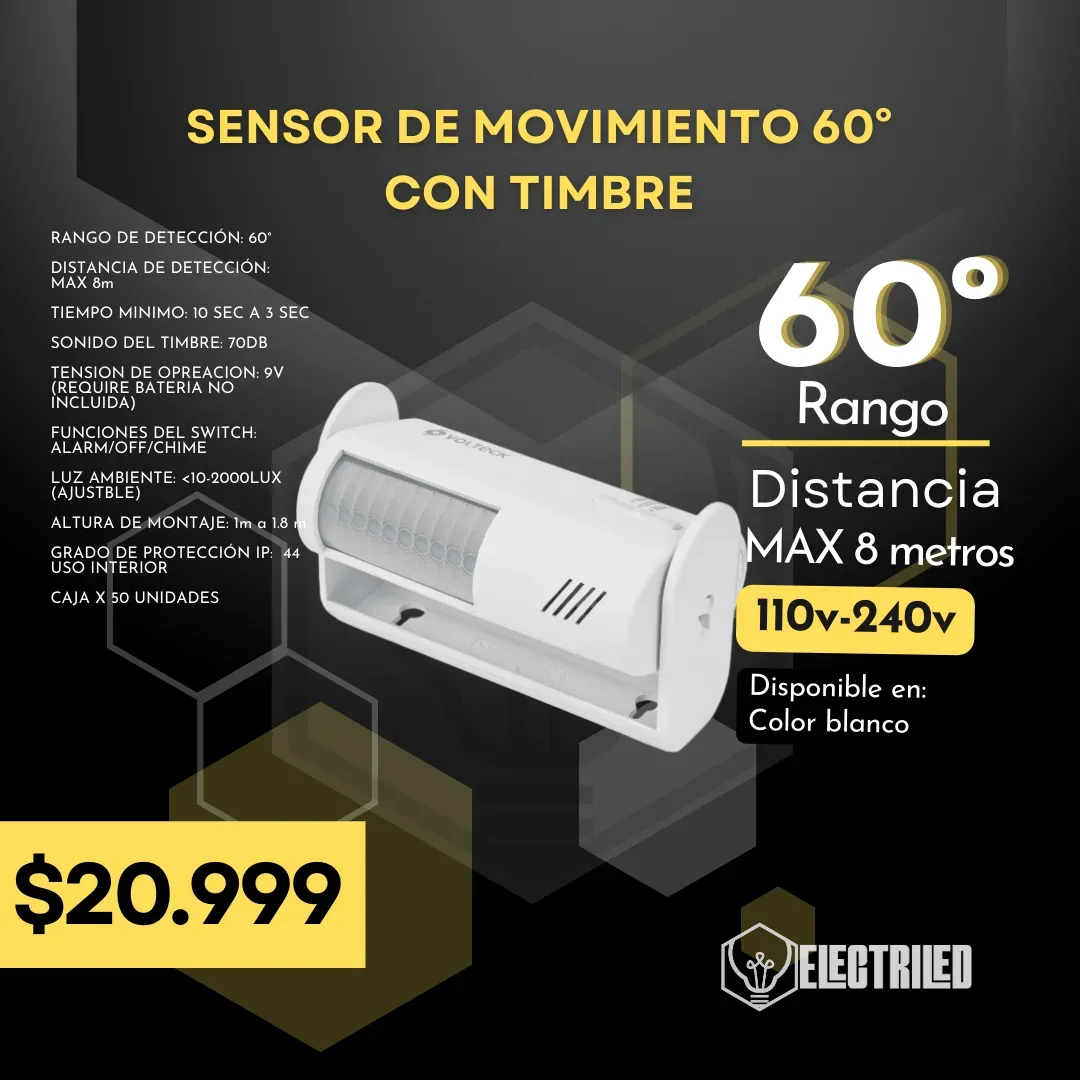 SENSOR DE MOVIMIENTO 60° CON TIMBRE