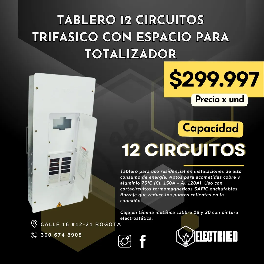 TABLERO 12 CIRCUITOS TRIFASICO CON ESPACIO PARA TOTALIZADOR